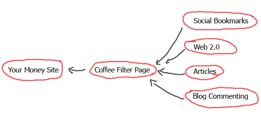 Since the web 2.0 property is already trusted domain, a more aggressive link building pattern won’t send any red flags. And since the only link to our money site is a highly valuable link from our coffee filter page, the new domain will sit higher in the search rankings without risking that dreaded Google sandbox!